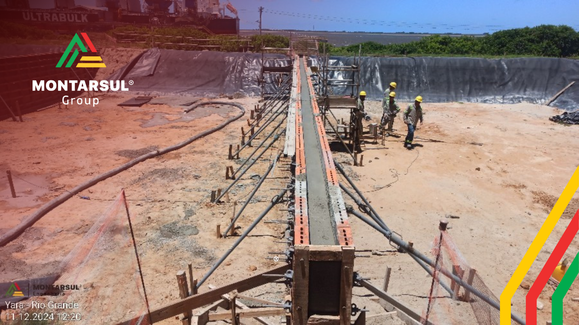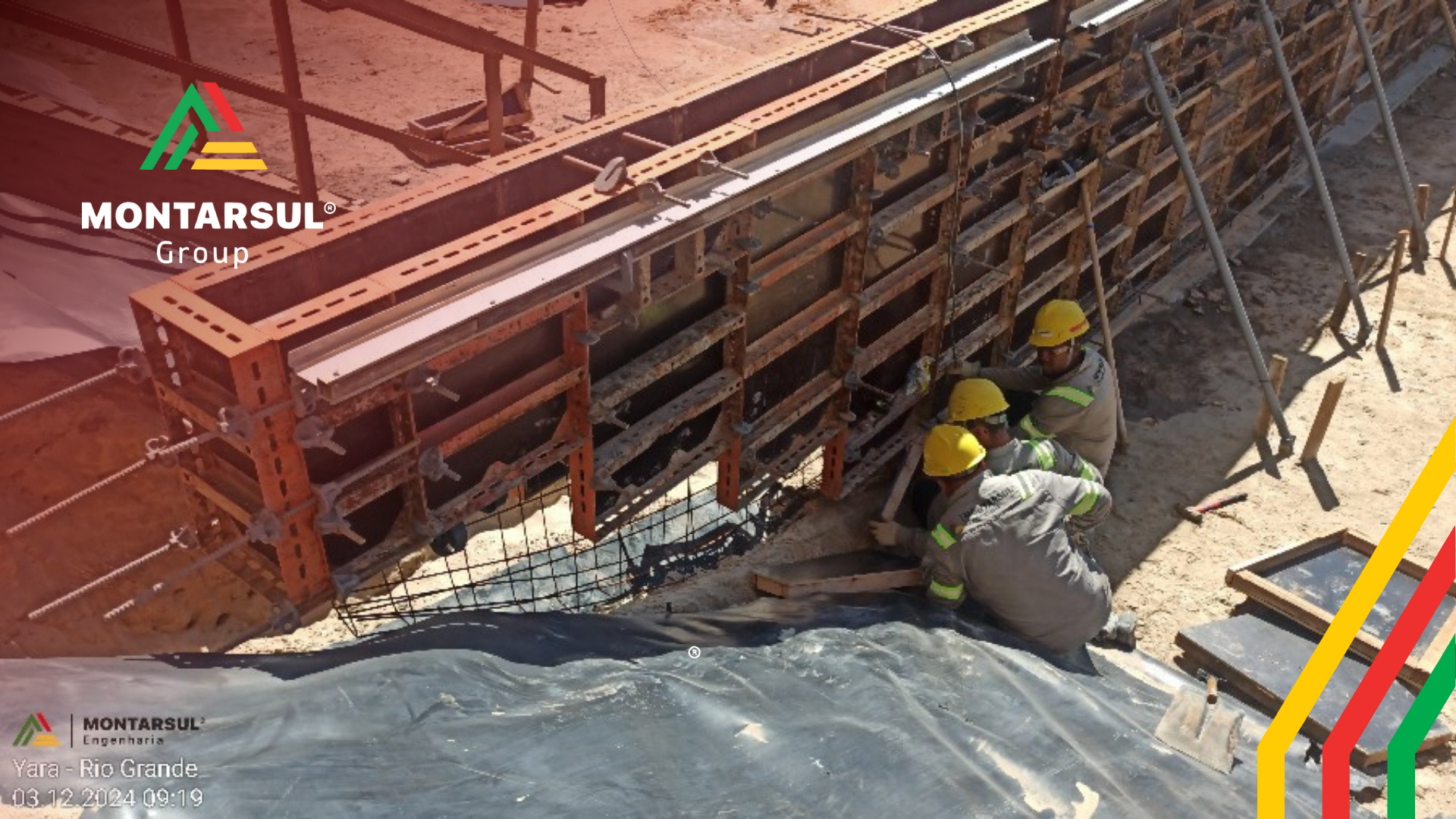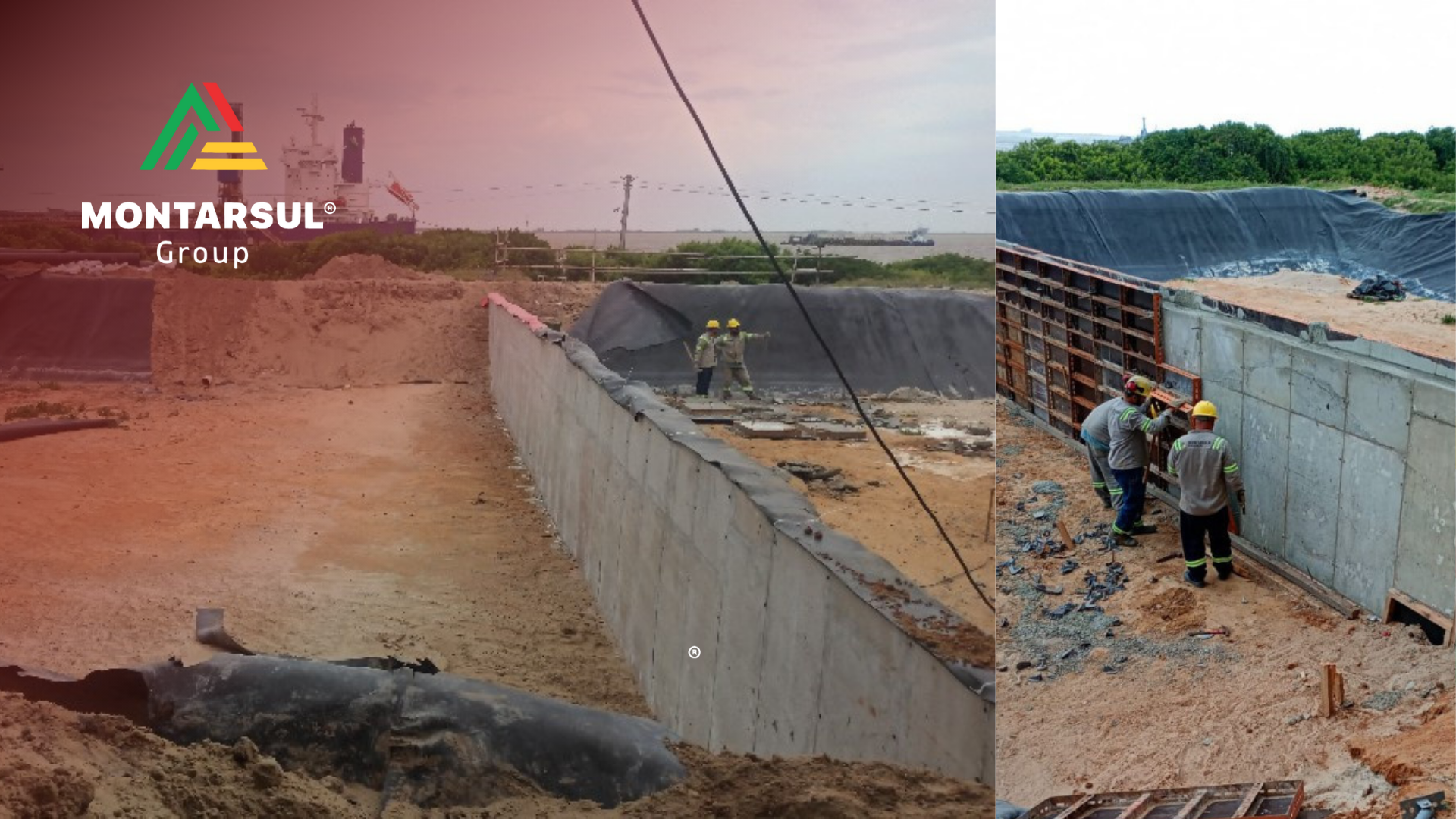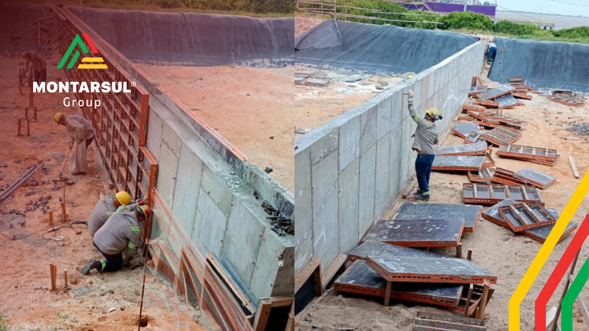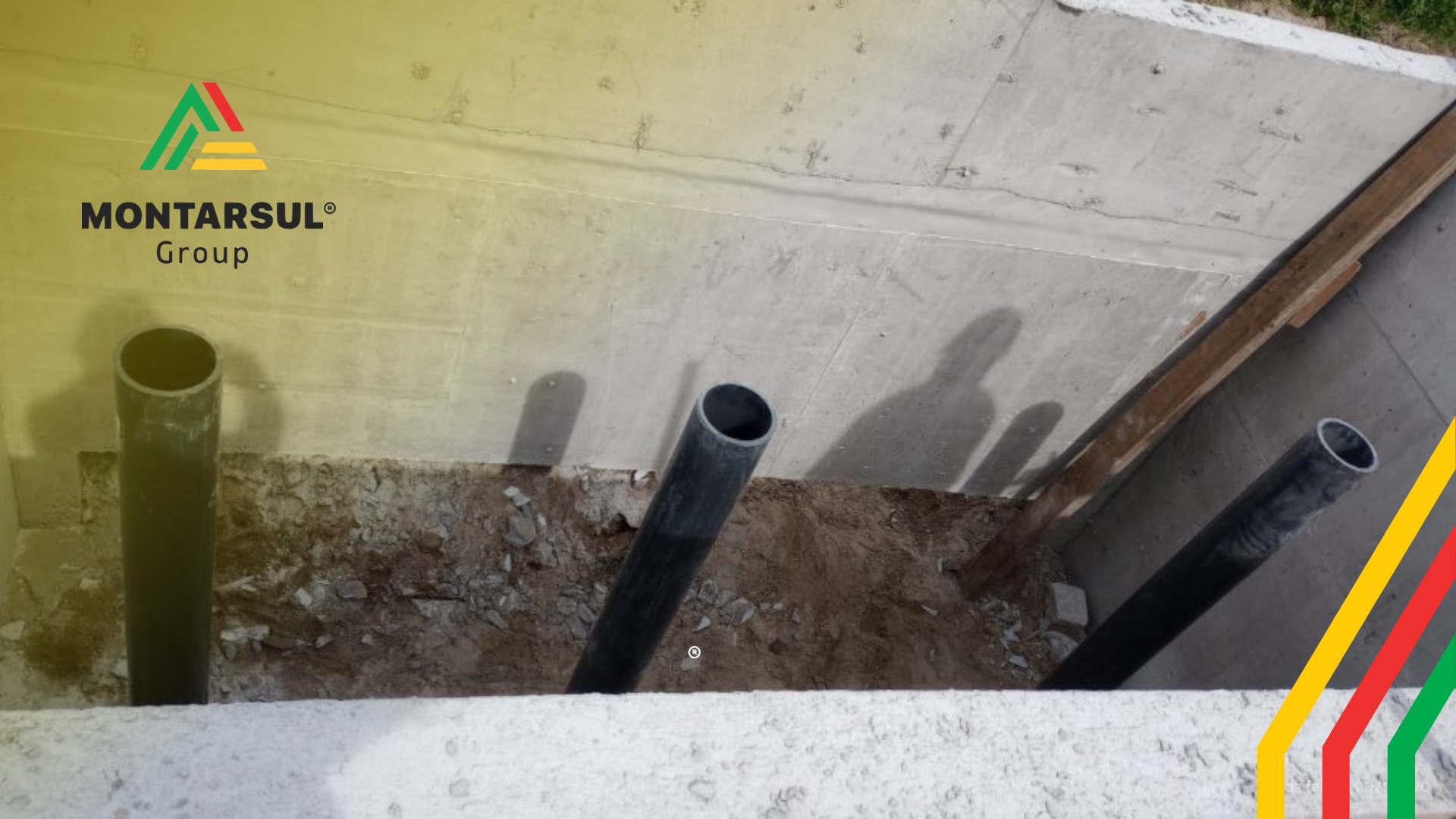 A montagem das fôrmas metálicas foi um dos diferenciais deste projeto, garantindo precisão na moldagem das paredes e caixas de inspeção. Essas estruturas foram reforçadas com armaduras de aço para aumentar a resistência à pressão hidrostática e às variações climáticas.