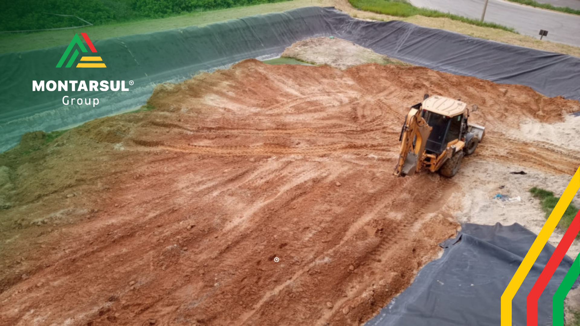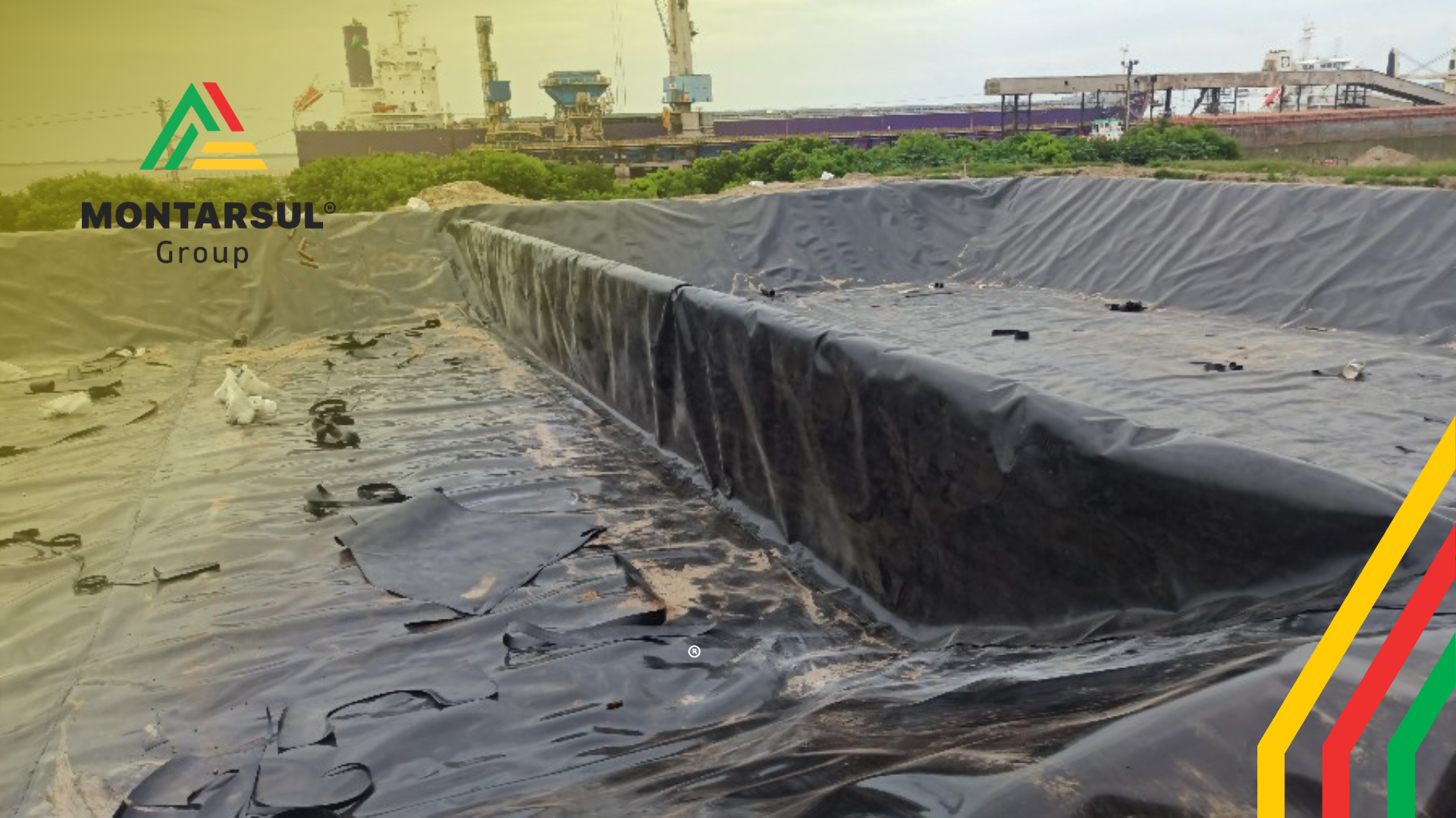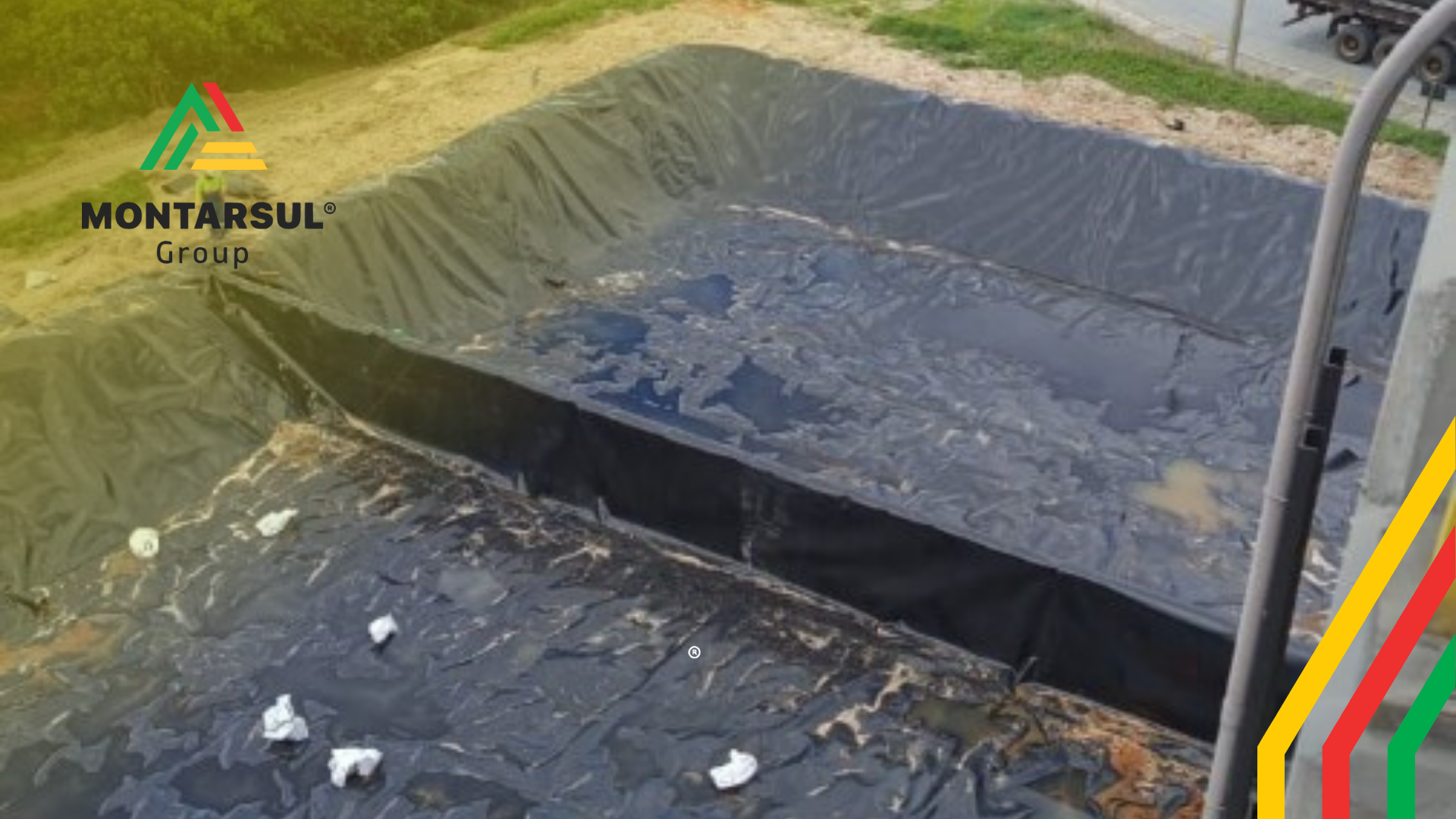 Para evitar que a água contaminada infiltrasse no solo, foi instalada uma geomembrana de PEAD (Polietileno de Alta Densidade). Esse material é resistente a rupturas e produtos químicos, garantindo impermeabilização por décadas.