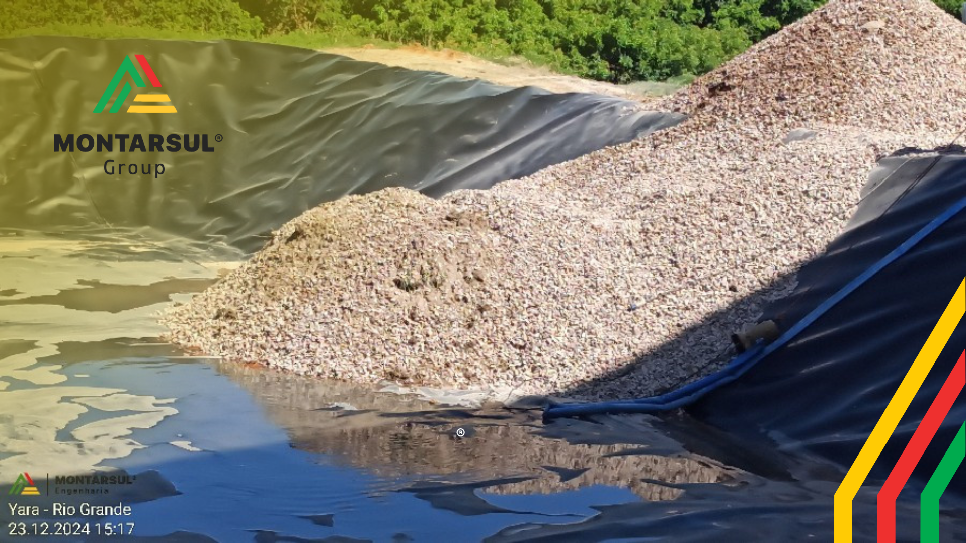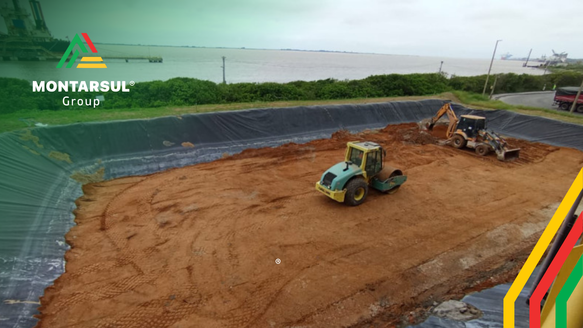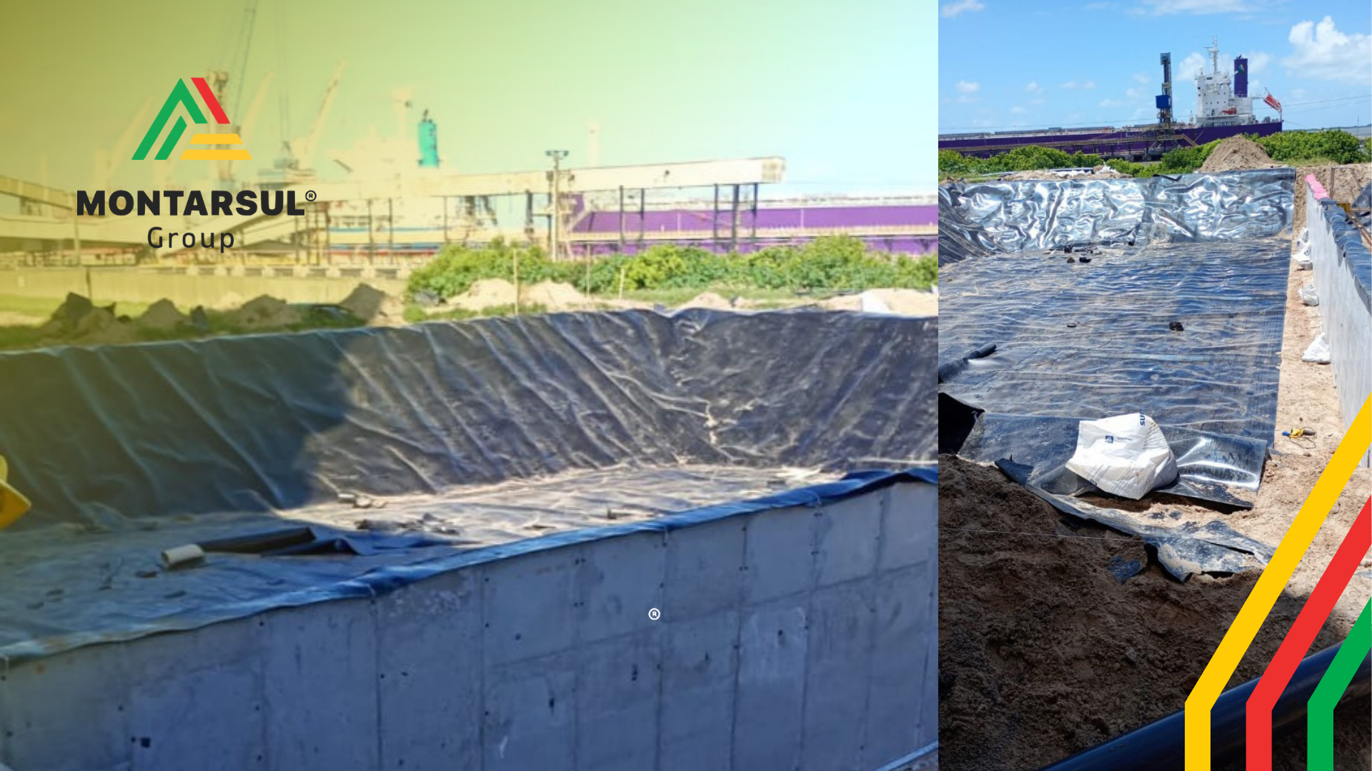 Para evitar que a água contaminada infiltrasse no solo, foi instalada uma geomembrana de PEAD (Polietileno de Alta Densidade). Esse material é resistente a rupturas e produtos químicos, garantindo impermeabilização por décadas.