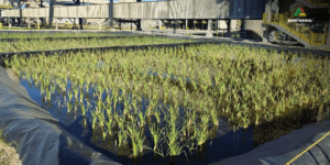 As taboas (Typha spp.) foram plantadas em zonas da bacia, onde suas raízes ajudam a absorver nutrientes e metais pesados. Essa vegetação também oxigena a água e cria habitats para microorganismos benéficos.